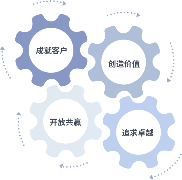 成就客户是一切决策的出发点,创造价值是衡量所有工作的标准,追求卓越是ALLBET做事做人的态度,开放共赢是ALLBET的格局也是最终的结果。价值观的齿轮环环相扣,推动着组织里的每个人不断向前。